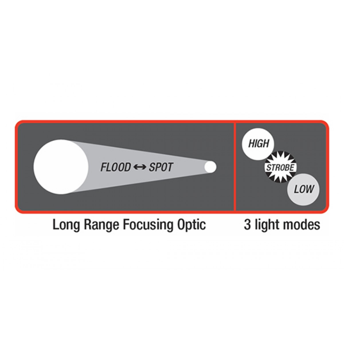Конструкцията на оптичната система на HP5R е същата като на популярните фенери LED Lenser – комбинация от рефлектор и фокусираща леща – и ви позволява да превключвате между две положения: flood (равномерно засветяване на голяма площ) и spot (фокусиране в тесен лъч с ярка точка в центъра и широк дифузен ореол около нея за подобрена видимост). Фенерът има три режима на светене: турбо (181 лумена, обхват до 172 метра), икономичен (17 лумена / 52 метра) и сигнален (strobe).
